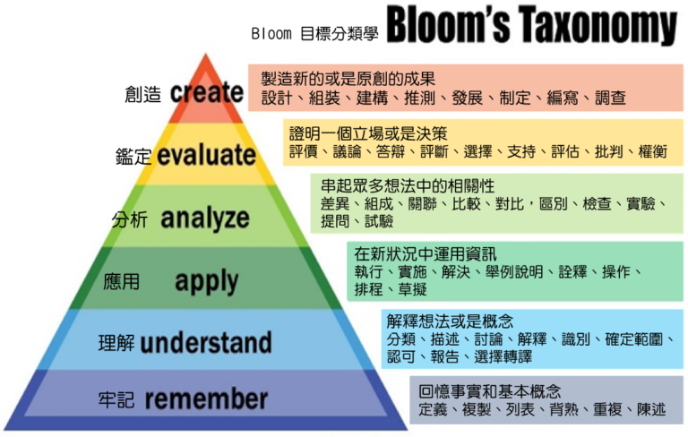 認知領域從低到高分成以下六個層級:
